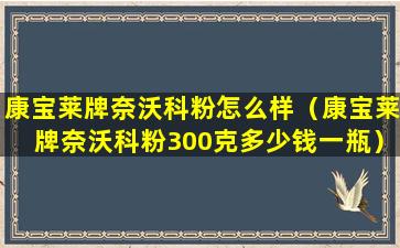 关于“康宝莱牌奈沃科粉300克多少钱一瓶”的问题,价格可能会因地区、销售渠道和促销活动等因素而有所不同。通常,这类产品的价格信息可以通过以下几种方式获取: