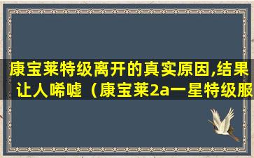关于“康宝莱特级离开的真实原因”,这可能指的是某个具体的事件或者个人决定离开康宝莱(Herbalife)这家公司的原因。康宝莱是一家全球知名的营养品公司,提供各种健康和营养产品。由于您的问题没有提供具体的时间、人物或者事件背景,我无法提供一个确切的答案。