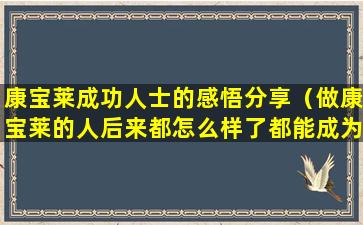 请注意,这些感悟是基于一般性的成功原则,并不特定于康宝莱。每个人的成功之路都是独特的,他们的感悟和经验也会有所不同。康宝莱的商业模式和产品在不同国家和地区可能会受到不同的法律和监管要求,因此在考虑加入康宝莱或任何其他直销公司时,应当进行充分的研究和考虑。