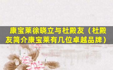 康宝莱(Herbalife)是一家全球知名的营养品公司,以生产营养补充品、体重管理和个人护理产品而闻名。徐晓立和杜殿友可能是与康宝莱相关的个人,可能是公司的员工、分销商或者是与公司有合作关系的个人。由于信息有限,无法提供更多关于这两位个人的具体信息。如果您需要了解更详细的信息,建议直接联系康宝莱公司或查找相关的官方公告和新闻报道。