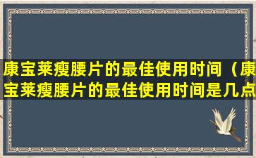 关于康宝莱瘦腰片的最佳使用时间,目前没有官方的科学研究或指导意见。康宝莱是一家知名的营养补充品公司,其产品通常用于支持健康饮食和体重管理。任何营养补充品的使用都应该基于个人的健康状况和营养需求,并且在医生或营养师的指导下进行。