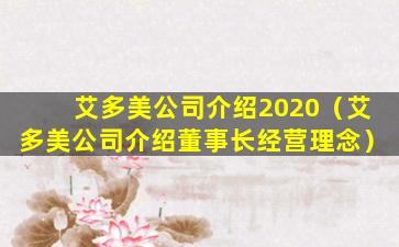 请注意,由于我的知识截止日期是2023年,关于2020年的具体信息可能需要查阅更新的资料或直接访问艾多美的官方网站以获取最新信息。如果您需要关于艾多美2020年的详细介绍,建议您查看当时的官方公告、新闻报道或公司发布的年度报告。