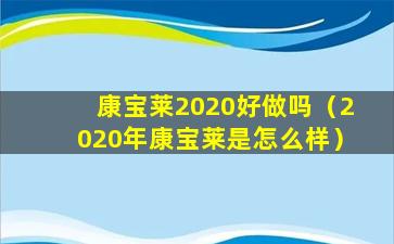 截至我知识更新的时间点(2023年),关于2020年康宝莱(Herbalife Nutrition)的具体情况,我可以提供一些基本信息。康宝莱是一家全球知名的营养品公司,主要通过直销模式销售其产品,包括营养补充品、体重管理产品和个人护理产品等。