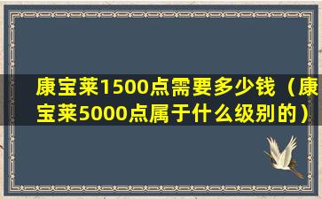 关于“康宝莱5000点”属于什么级别,这取决于康宝莱当时的营销计划和奖励制度。康宝莱的奖励制度可能会根据地区和时间的不同而有所变化,因此具体的级别划分需要参考当时的官方资料或咨询康宝莱公司。