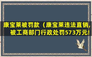 关于康宝莱公司被工商部门行政处罚573万元的消息,我们应当从官方渠道获取准确信息。如果该消息属实,那么这表明中国的市场监管机构在严格执行法律法规,保护消费者权益,维护市场秩序。我们应当支持并信任监管机构的决定,同时也提醒所有企业必须遵守中国的法律法规,合法经营。对于具体的案件细节,我们建议公众关注官方发布的信息,并从中学习如何更好地维护自身合法权益。