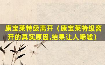 如果有关康宝莱特级离开的具体情况,建议关注官方公告或权威媒体的报道,以获取准确和官方认可的信息。同时,我们也应该尊重个人隐私和公司内部事务,避免基于未经证实的信息进行推测或传播。