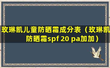 玫琳凯(Mary Kay)是一家国际知名的美容品牌,提供各种护肤和彩妆产品。关于“玫琳凯儿童防晒霜”的成分表,由于我无法访问最新的产品信息数据库,我无法提供确切的成分列表。不过,通常儿童防晒霜的成分会考虑到儿童敏感的皮肤,避免使用刺激性或有害的化学成分。