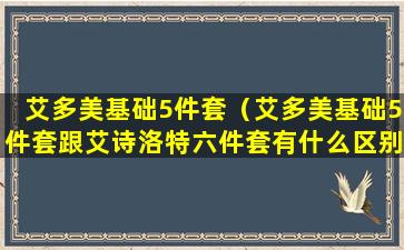 如果您指的是艾多美品牌的基础5件套,建议您直接查看艾多美官方网站或授权零售商提供的产品信息,以获取最准确的产品组合和详细介绍。通常,这样的套装旨在提供一套完整的护肤解决方案,帮助用户简化购买决策并确保产品之间的兼容性和效果。