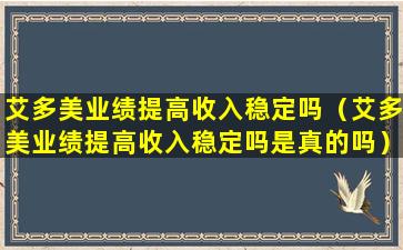 艾多美(Amway)是一家全球性的直销公司,以销售健康、美容和个人护理产品而闻名。关于“艾多美业绩提高收入是否稳定”的问题,需要从几个方面来考虑: