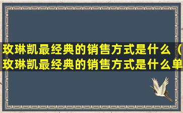 玫琳凯(Mary Kay)是一家以直销模式销售化妆品和个人护理产品的美国公司。其最经典的销售方式是通过独立的美容顾问进行产品销售和推广。以下是玫琳凯的一些经典销售策略: