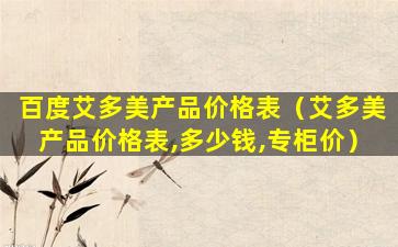 关于“百度艾多美产品价格表”的信息,由于我无法访问实时的互联网数据,因此无法提供具体的产品价格表。艾多美(Aveda)是一个以植物为基础的美容品牌,提供护肤、护发、身体护理等产品。如果您想了解艾多美产品的价格,建议您直接访问艾多美官方网站或授权零售商的网站,或者前往实体店铺查询最新的产品价格信息。