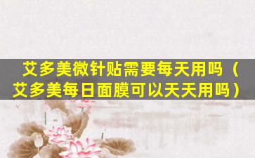 艾多美微针贴是一种美容产品,它使用微针技术来帮助皮肤吸收营养成分,促进皮肤更新和修复。关于是否需要每天使用,这通常取决于产品说明书上的建议以及个人的皮肤状况和需求。