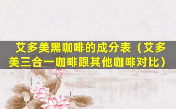 艾多美(Amway)是一家全球知名的直销公司,其产品线涵盖了健康、美容、家居等多个领域。关于艾多美黑咖啡的成分表,由于产品可能因地区和版本的不同而有所差异,我无法提供具体的成分列表。