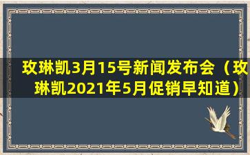 截至我的知识更新日期(2023年4月),我无法提供关于“玫琳凯3月15号新闻发布会”的具体信息,因为这可能是一个特定的事件,而我没有接收到相关的详细数据。如果这是一个在2023年3月15日发生的事件,我建议您查看玫琳凯的官方网站、新闻发布或者相关的新闻报道来获取最新的信息。