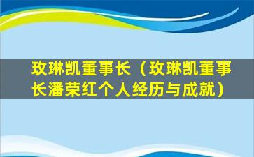 截至我所知的信息,玫琳凯(Mary Kay Inc.)是一家美国的直销化妆品公司,由玫琳凯·艾什(Mary Kay Ash)于1963年创立。公司以其粉色的凯迪拉克、激励性的销售文化和女性赋权而闻名。关于“玫琳凯董事长潘荣红”的信息并不在我的知识库中,可能是因为这个名字并不是公众广泛认知的人物,或者是因为我的知识截止日期是2023年4月,之后的信息我无法获取。