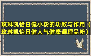 玫琳凯(Mary Kay)是一家国际知名的美容品牌,以其高品质的护肤和彩妆产品而闻名。关于“玫琳凯怡日健人气健康调理品粉”这一具体产品,目前没有足够的信息来确认其存在或详细描述。