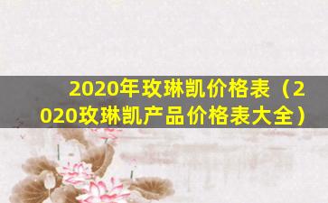 很抱歉,我无法提供具体的“2020年玫琳凯价格表”,因为我的知识截止日期是2023年,而且我无法访问实时的数据库或外部资源来获取特定年份的价格信息。玫琳凯(Mary Kay)是一家国际知名的美容品牌,其产品价格可能会因地区、促销活动、货币汇率等因素而有所不同。