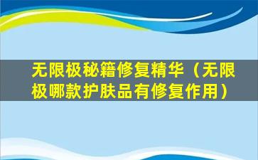无限极是中国的一家直销公司,主要销售健康食品、个人护理品等产品。关于“无限极秘籍修复精华”这一产品,我无法提供具体的信息,因为这可能是一个特定产品的名称,而我的知识库中没有这方面的详细数据。