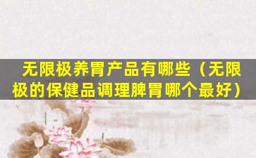 无限极(Infinitus)是一家中国的保健品公司,以生产中草药保健品而闻名。关于调理脾胃的产品,无限极有多款产品可能适合,但具体哪一款最好,需要根据个人的体质和具体情况来判断。以下是一些可能适合调理脾胃的无限极产品:
