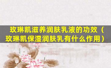 玫琳凯(Mary Kay)是一家国际知名的美容品牌,其产品线涵盖护肤、彩妆等多个领域。玫琳凯滋养润肤乳液是该品牌的一款护肤产品,主要功效通常包括: