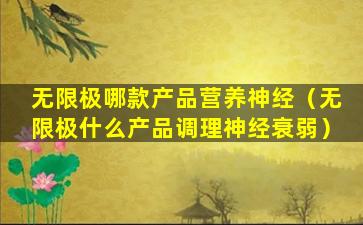 如果您想了解无限极哪款产品适合营养神经,建议您查看无限极官方网站或咨询无限极的客服,以获取最准确的产品信息和建议。同时,购买任何保健品之前,最好咨询医生或营养师,确保产品适合您的健康状况和需求。
