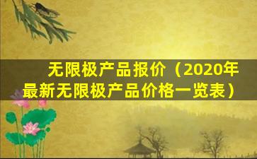 如果您需要了解无限极产品的价格信息,建议您直接访问无限极的官方网站或联系其官方客服获取最新的产品价格信息。您也可以通过授权的经销商或零售商了解产品的价格。请注意,由于市场波动和促销活动,价格可能会有所变动。