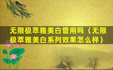 关于“无限极萃雅美白管用吗”的问题,这取决于多个因素:
