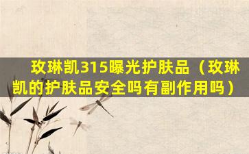 截至我的知识更新日期(2023年),我没有找到关于“玫琳凯315曝光护肤品”的具体信息。315通常指的是中国的消费者权益日,每年的3月15日,中国会举办一系列活动来曝光和打击假冒伪劣商品,保护消费者权益。如果有关玫琳凯的护肤品在这一天被曝光,可能是因为产品质量问题、虚假宣传或其他违反消费者权益的行为。