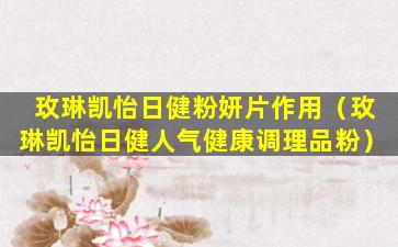 玫琳凯(Mary Kay)是一家国际知名的美容品牌,以其高品质的护肤和彩妆产品而闻名。关于“玫琳凯怡日健人气健康调理品粉”这一具体产品,目前没有足够的信息来确认其存在或详细描述。
