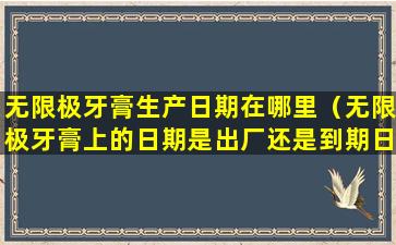 无限极牙膏上的日期通常是指生产日期,而不是到期日期。生产日期是指产品制造出来的日期,而到期日期(也称为有效期或保质期)是指产品在正常储存条件下可以保证质量和效果的最后期限。