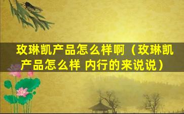 关于玫琳凯产品的评价,以下是一些内行的观点和分析: