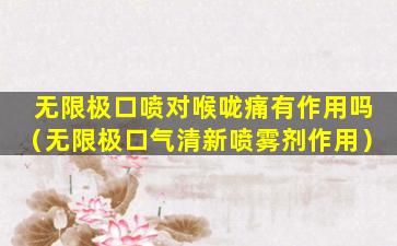 无限极是一家中国的健康产品公司,其产品线涵盖了多种健康食品和日用品。关于无限极口喷是否对喉咙痛有作用,这需要根据产品的具体成分和功效来判断。