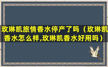 截至我的知识更新日期(2023年),关于玫琳凯(Mary Kay)旅情香水(Travel Eau de Toilette)是否停产的具体信息并不明确。玫琳凯是一个国际知名的美容品牌,其产品线可能会根据市场需求、公司战略调整或产品更新周期而发生变化。