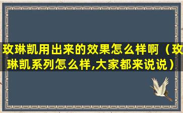 关于“玫琳凯用出来的效果怎么样”,这个问题的答案因人而异,因为每个人的肤质、生活习惯、使用习惯以及对产品的反应都是不同的。以下是一些可能影响使用效果的因素: