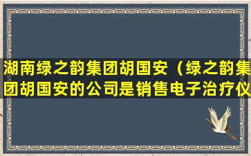 胡国安是湖南绿之韵集团的创始人之一,该集团是一家在中国湖南省长沙市注册的大型企业集团,涉及多个领域,包括生物科技、健康产业、电子商务等。胡国安作为企业家,在推动企业发展和地方经济建设方面有一定的影响力。