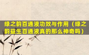关于“绿之韵百通液”的功效与作用,目前没有官方的科学研究或医疗机构的认证信息。在中华人民共和国,任何健康产品或药物的功效和作用都需要经过国家药品监督管理局的批准,并且有明确的说明书和临床试验数据支持。