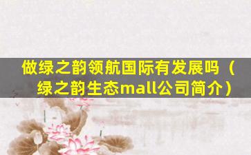 截至我的知识更新日期(2023年),我没有找到关于“绿之韵生态mall”的具体信息。这可能是因为该公司不是一个广为人知的大型企业,或者它可能是一个地方性的、新兴的或者特定领域的公司。如果“绿之韵生态mall”是一个特定的商业实体,它可能是一个专注于生态友好产品或服务的购物中心或电商平台。