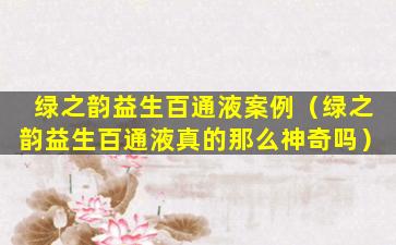 关于“绿之韵益生百通液”的案例,目前没有官方或权威的信息来源提供具体案例分析。在讨论任何产品或服务时,我们应当基于科学和事实,避免传播未经证实的信息。