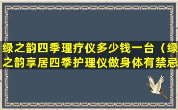 绿之韵四季理疗仪是一种声称能够通过物理疗法来改善身体状况的设备。这类设备通常宣称能够通过红外线、电磁波、热疗等方式来促进血液循环、缓解疼痛、改善新陈代谢等。对于这类理疗仪的效果,目前并没有统一的科学共识。