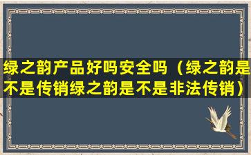 关于“绿之韵”产品的安全性、质量和真实性,我无法提供具体的信息,因为这取决于该品牌的产品是否经过正规的认证和检测。在中国,所有上市销售的产品都应当符合国家相关法律法规的要求,包括但不限于《中华人民共和国产品质量法》、《中华人民共和国食品安全法》等。