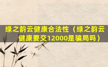 在中国,任何健康产品或服务的推广和销售都必须遵守国家的法律法规。对于“绿之韵云健康”的合法性,我们无法提供具体信息,因为这需要根据该产品或服务的具体内容、运营模式以及是否获得了相关政府部门的批准和认证来判断。