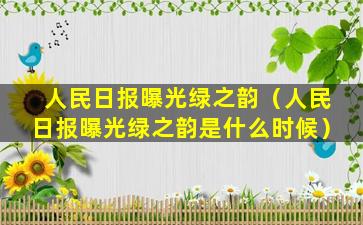 截至我的知识更新日期为止,我没有找到人民日报曝光“绿之韵”的具体时间。如果您需要了解相关信息,建议直接查阅人民日报的官方发布或者通过正规新闻渠道获取最新报道。请注意,获取信息时应确保来源的权威性和准确性。