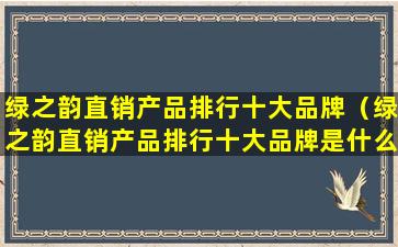 截至我的知识更新日期(2023年),关于“绿之韵直销产品排行十大品牌”的具体信息并不明确,因为“绿之韵”可能指的是某个特定的品牌或产品系列,而直销产品的排行榜可能会随时间和市场情况而变化。直销行业中,不同的品牌和产品会根据其市场表现、消费者评价、销售额等因素被排名。