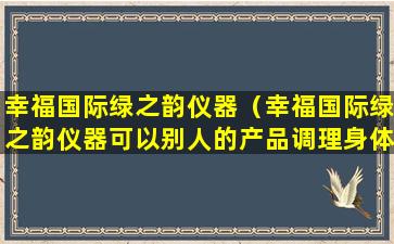 您提到的“幸福国际绿之韵仪器”并不是一个我所了解的明确概念或实体。如果您是在寻找关于某种特定的仪器或设备的信息,请提供更多的上下文或详细描述,以便我能够提供更准确的帮助。