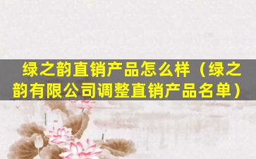 关于“绿之韵直销产品怎么样”,这取决于个人的使用体验和产品评价。以下是一些评估直销产品的一般性建议: