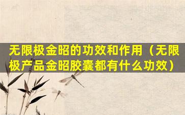 如果您想了解“无限极金昭”的具体功效和作用,建议您查阅该产品的官方说明书或咨询无限极公司的官方渠道。同时,购买和使用任何健康产品前,最好咨询医疗专业人士的意见,以确保产品适合您的健康状况。