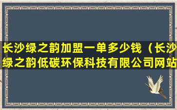 关于“长沙绿之韵加盟一单多少钱”的问题,由于我无法访问最新的数据和信息,我无法提供确切的加盟费用。通常,加盟费用会根据品牌、加盟模式、店铺规模等因素有所不同。