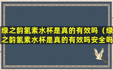 关于“绿之韵氢素水杯”是否真的有效,这需要从几个方面来考虑: