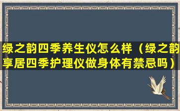 请注意,以上信息是基于一般养生仪器的特点提供的,具体到绿之韵四季养生仪的产品特性和用户评价,您可能需要查阅该产品的官方资料或用户反馈来获取更准确的信息。