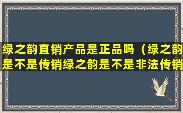 绿之韵是中国的一家直销公司,其产品是否为正品,通常取决于公司的经营行为和产品的来源。在中国,直销公司和其产品需要遵守国家的相关法律法规,包括但不限于《中华人民共和国反不正当竞争法》、《中华人民共和国消费者权益保护法》等。